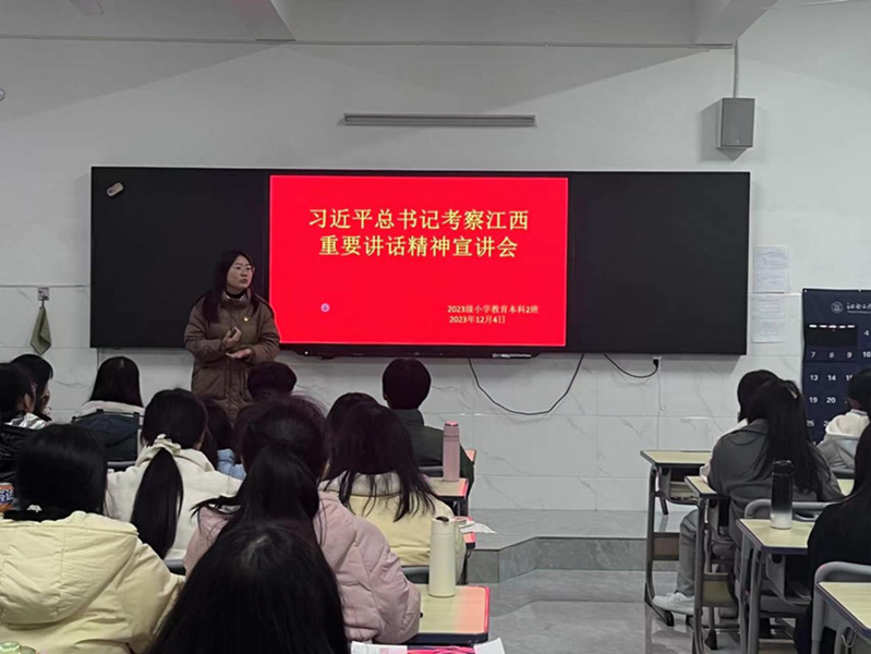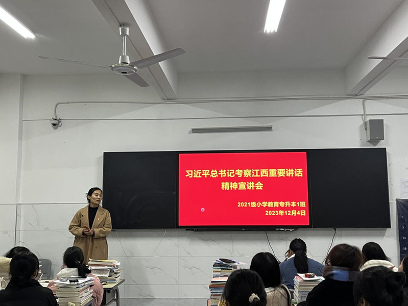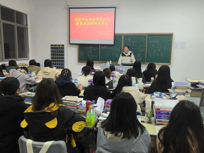 12月4日,公司组织各班开展了以“习近平总书记考察江西重要讲话精神”为主题的宣讲会,传达学习习近平总书记考察江西的系列重要讲话精神,班会由各班班主任(辅导员)主持。