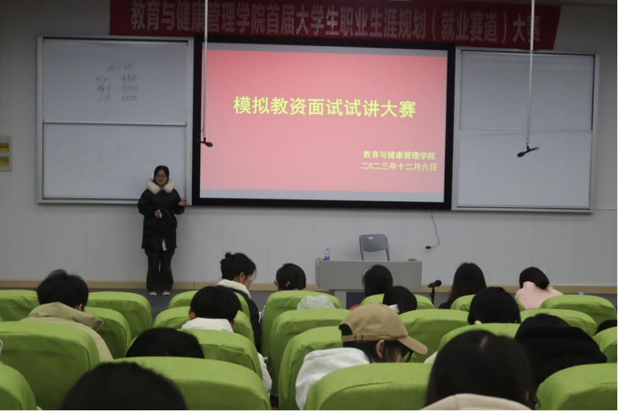 本次面试比赛需要参赛选手提前准备一场10分钟左右的试讲。选手们试讲科目多样,他们严格按照面试要求,语言表达流利,无迟疑和停顿;仪表得当,教态自然、得体。他们所进行的导入环节很有趣味性和启发性,能快速吸引员工注意力。教学内容具有层次性、递进性;讲课内容突出,重难点明确,讲解透彻。运用多种教学方式,进行了生动的试讲。教师评委们认为同学们的表现都很出色,各有自己的风格与特色,但仍然有一些不足需要去改正。在每位员工面试结束后,各个评委对考生表现打分,并进行专业指导和指正。