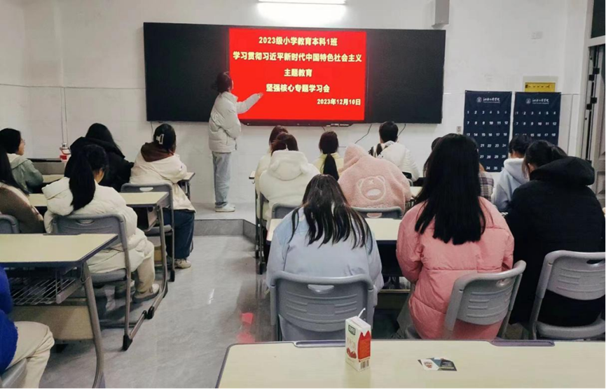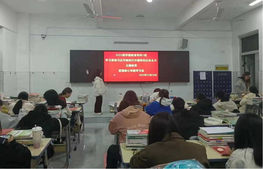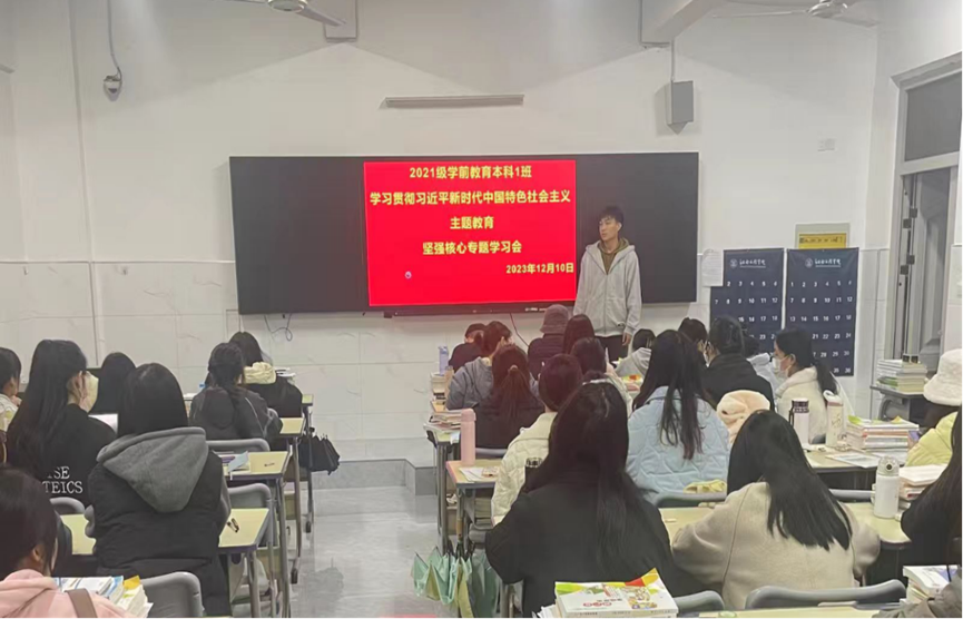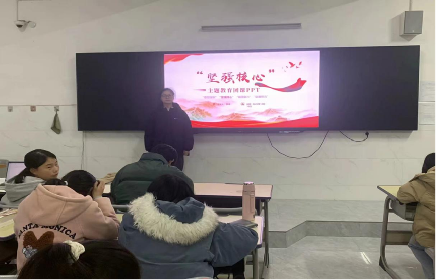 各班主讲人紧紧围绕增强“四个意识”、坚定“四个自信”、做到“两个维护”进行宣讲,要求全体同学以党的旗帜为旗帜、以党的意志为意志、以党的使命为使命,坚定不移听党话、感党恩、跟党走,自觉做习近平新时代中国特色社会主义思想的坚定信仰者、积极传播者和忠实实践者。主讲人以深入浅出的语言,带领同学们正确理解坚强核心的深刻内涵,做有理想、有信念、有担当的新青年。主讲人提到,同学们要以学为本,加强政治理论和专业知识学习,刻苦钻研,勇于担当,不畏挑战,珍惜大学时光,将个人成长自觉融入国家发展,做见证者、建设者和创造者,坚定理想信念,传承红色基因,积极发扬艰苦奋斗精神,让青春在奉献中闪光。