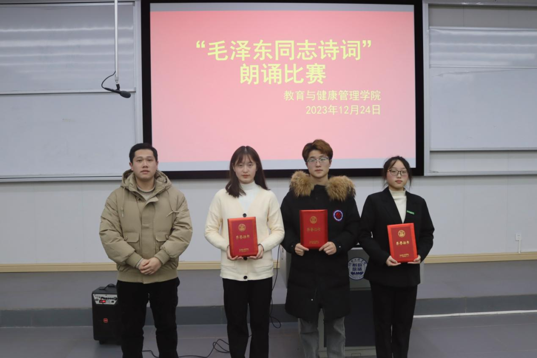 今年是毛泽东同志诞辰130周年,为了激发广大师生的爱党爱国情怀,弘扬红色经典,传承红色基因。2023年12月24日晚,公司举办毛泽东同志诗词朗诵大赛。比赛由学院团总支员工会学术部干事钱彤主持,党总支书记刘永东、副书记张沁、教师党总支书记高爽、员工党总支书记刘露、团总支书记胡子龙老师担任本次比赛评委。