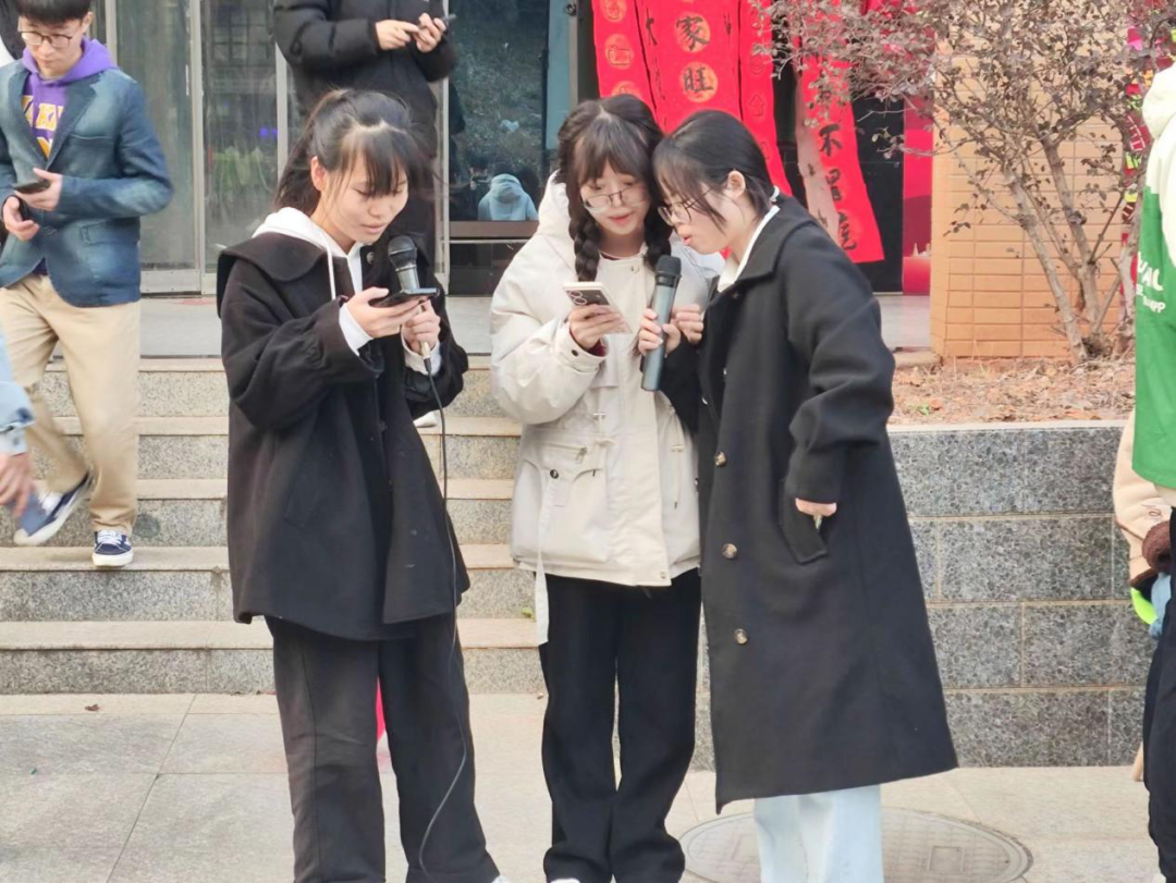 12月31日,公司配合其他院在食堂门口开展“庆元旦,迎新年”系列活动,公司负责准备礼品,在食堂门口进行唱歌活动。在活动中,大家个个精神抖擞,心潮澎湃。一首首歌曲、一支支舞蹈,美妙的音符、悠扬的旋律、嘹亮的歌声,将现场气氛烘托到高潮,尽情展现公司学子朝气蓬勃、积极向上的精神风貌。