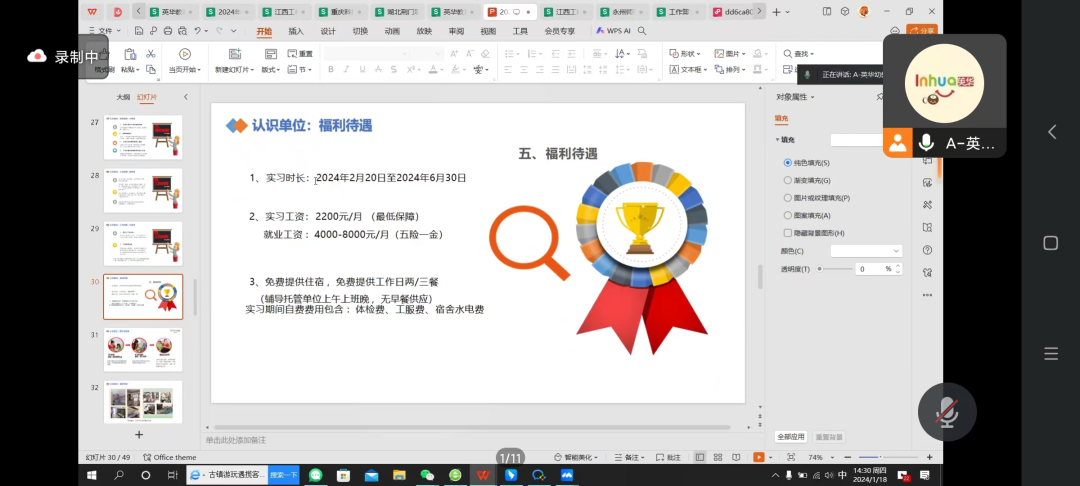 为深入贯彻落实党中央、国务院“稳就业”“保就业”决策部署,进一步做好公司2024届毕业生就业工作,拓宽毕业生就业渠道,搭建用人单位与毕业生之间的交流平台,2024年1月18日下午,ylzzcom永利总站联合广东唐彩教育集团、深圳英华教育集团、深圳雏鹰教育集团三家企业,采取线上宣讲招聘形式,为2024届毕业生开展线上专场招聘。公司党支部书记刘永东、2024届毕业班全体辅导员、部分2024届毕业生参加了本次线上招聘会,毕业班辅导员刘露主持会议。