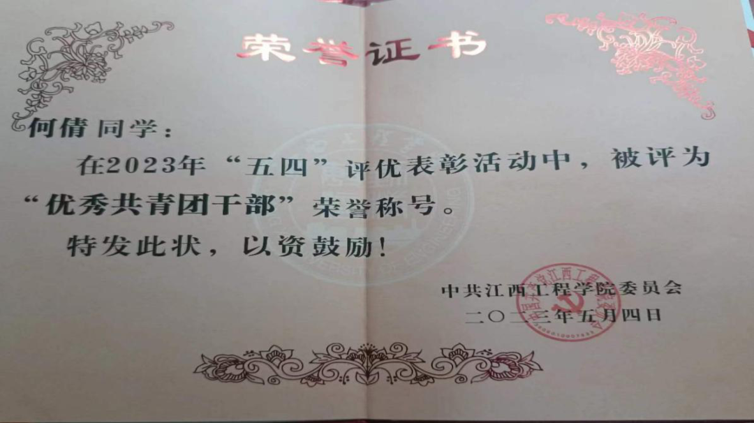 3.2023学年“五四”评优表彰活动中,被评为“优秀共青团干部”
