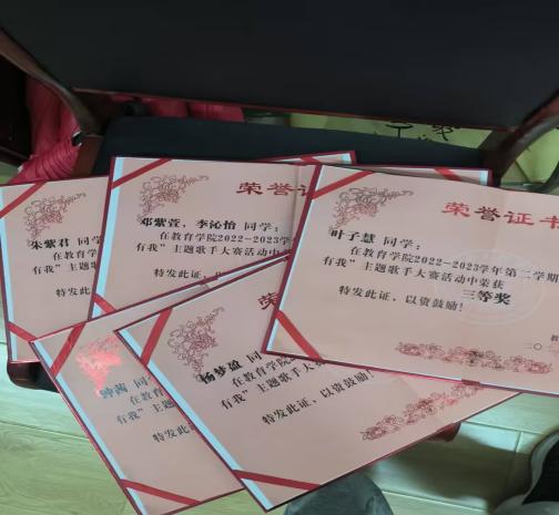 2.2023年6月,荣获“不负时代,青春有我”主题歌手大赛三等奖。