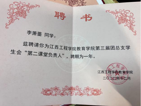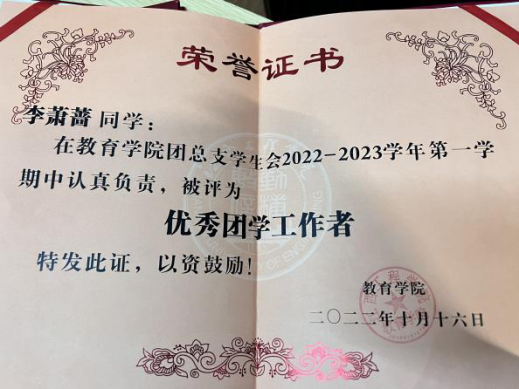2.2022-2023学年第一学期,荣获“优秀团学工作者”荣誉称号;