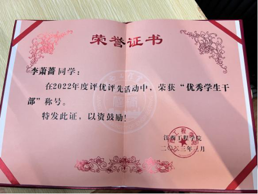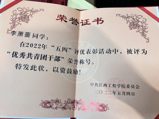 1.2021-2022学年第二学期,荣获“优秀共青团干部”荣誉称号;