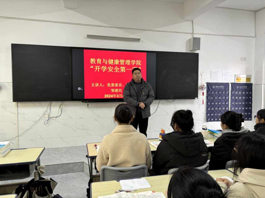 学期伊始,安全先行。为全面落实立德树人根本任务,进一步加强学校安全管理,增强全体师生安全意识,提高避险能力,培养良好的安全习惯和员工“珍爱生命,安全第一”的意识,2024年3月4日,公司党委委员、董事长助理邹建民深入ylzzcom永利总站2021级小学教育本科1班讲授了“开学安全第一课”。