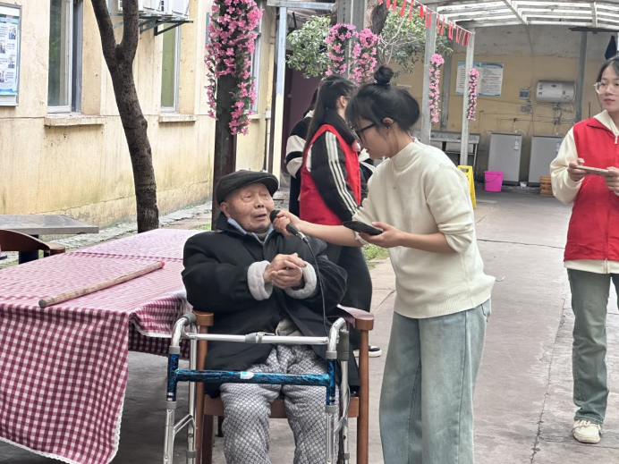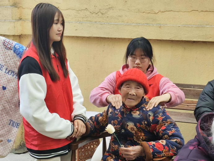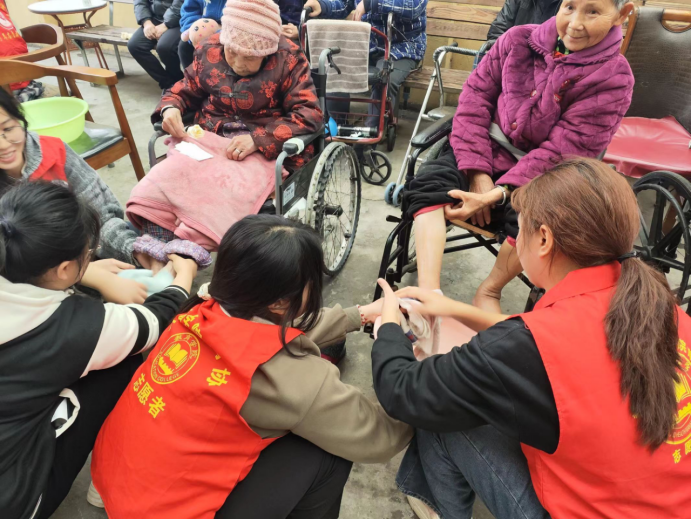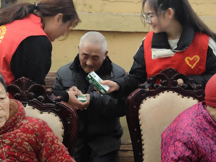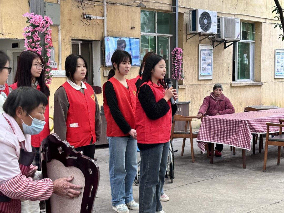 活动中,志愿者们热情地陪伴老人聊天,了解老人的基本生活和身体状况,询问他们的喜好,并叮嘱他们要注意天气变化,及时增减衣物。志愿者们温暖陪伴老人,通过实际行动传递爱与温暖。在温馨友爱的氛围下,志愿者们献上了精彩绝伦的节目。有的表演了“学习雷锋好榜样”向雷锋同志学习,有的表演了“唱支山歌给党听”向党表示忠诚,志愿者们的表演充满活力与激情,有位老爷爷在氛围的带动下也激情开嗓,赢得了全场的喝彩。其他志愿者们也在台下与老人们进行了互动,并且把学院提供的牛奶和水果等物资分发给老人们。养老院阿姨们端来了脸盆给老人们洗漱,志愿者们自发地上前为老人们擦脸、洗脚,整个活动中志愿者们满怀笑意,带着最真诚的祝福和笑容。
