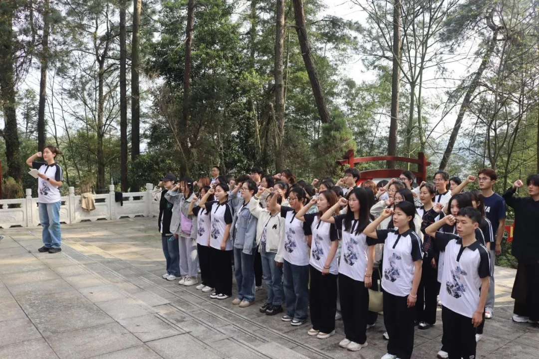 在长征班班长张澄蓉的带领下,同学们高唱红色歌曲《长征》并重温入团誓词。