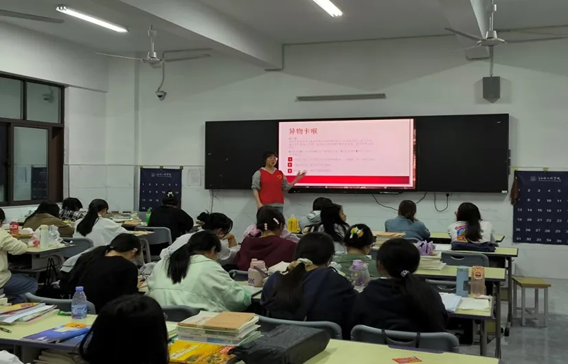宣讲过程中,各主讲人主要介绍了红十字运动基本知识、中国红十字运动发展历程和核心业务,并用案例讲述了红十字会在人道文化传播方面开展的探索。通过对基本医疗知识的讲解,提醒同学们要珍爱生命,了解急救的重要性,掌握正确的急救方法。与此同时,主讲人倡导同学们要坚持绿色健康的生活方式,发挥专业优势,积极参与红十字人道文化传播,为传播人道主义精神、弘扬社会正能量做出自己的贡献。