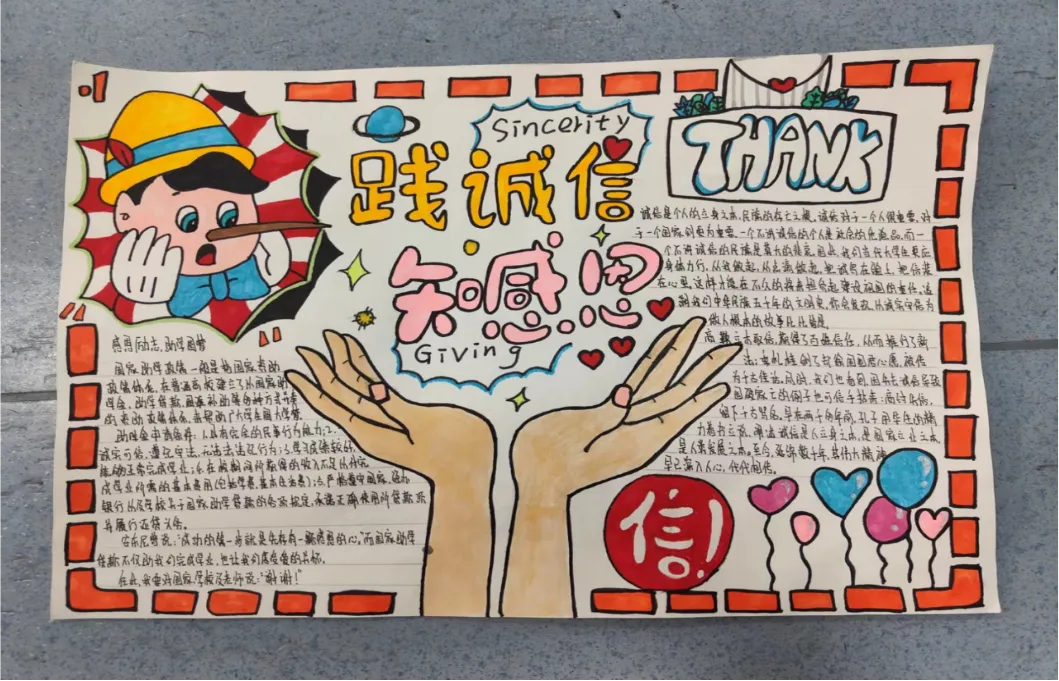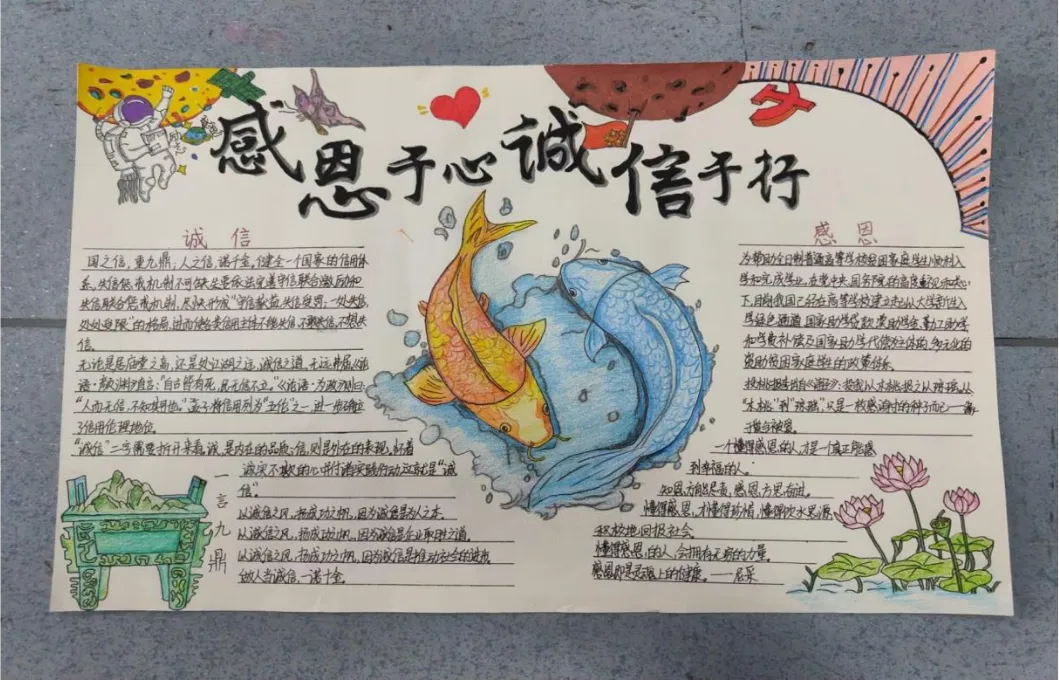 诚赢天下,信筑未来。本次主题手抄报活动是ylzzcom永利总站提升资助育人成效的重要体现,让员工在参与活动的过程中认识到诚信在日常生活中的重要性,树立正确的价值观和道德观,增强员工的诚信意识和自律能力,并引导员工常怀感恩之心,勇挑责任重担,奋发学习,励志成才。