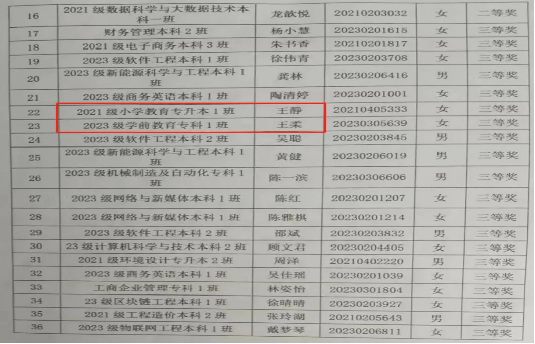 2023级学前教育专科1班 王柔