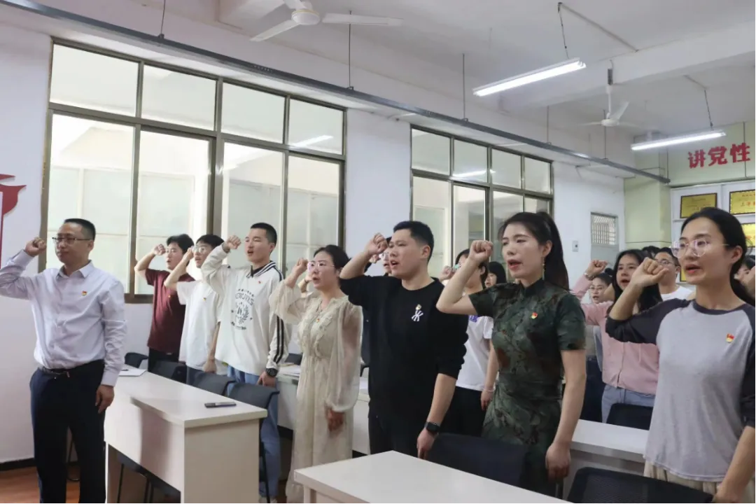 会议第七项议程,由党总支书记刘永东带领支部全体党员重温入党誓词。