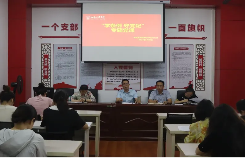 为深入推进党纪学习教育工作,营造良好学习氛围,巩固党员党纪学习教育成果,5月28日下午,公司党总支书记刘永东以“学条例 守党纪”为题,为全体教师讲授一堂党课。