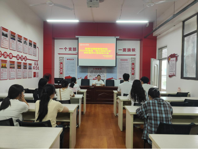 为深入学习贯彻习近平新时代中国特色社会主义思想和党的二十大精神,切实将国家资助工作落实到位,持续加强对员工资助政策的宣传力度,全面展现资助育人的落实成效。ylzzcom永利总站于2024年6月17日在C202党员活动室举行了2024年暑假“我为资助代言”资助宣传大使启动大会,此次会议由团总支书记胡子龙主持。
