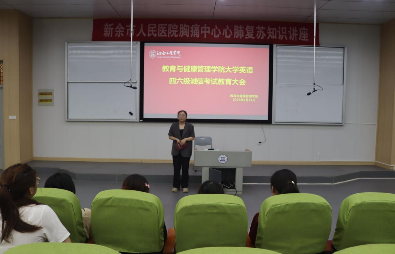 诚信不仅是一种品行,更是一种责任,诚信对每个人的学习、事业、交际都非常重要。罗文艳老师通过讲述各种因为考试违纪而被处分的例子告诫同学们要诚信考试,让同学们清楚地认识到了考试违纪的危害,警醒全体考生诚信考试,在考试期间要严格遵守考场规则,服从考务工作人员管理。同时,她向全体同学强调了英语学习对于个人未来发展的重要性,鼓励同学们积极备考,放松心情,劳逸结合,合理安排复习备考计划,稳扎稳打。她向大家详细介绍了四、六级考试的时间安排,特别强调了考试注意事项。她提醒同学们务必带好三证、准备好考试所需物品、准确填写个人信息、粘贴条形码,并严格按照要求作答试卷。最后,她希望同学们树立信心,珍惜机会,保持和平稳定的心态,通过不懈努力取得一个令自己满意的成绩。