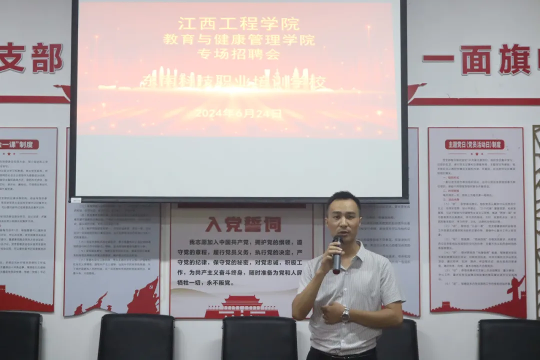 会上,刘永东对学院2024届毕业生的基本情况做了简要介绍。他强调,目前就业形势十分严峻,当前是毕业生就业的关键阶段,学院结合毕业生求职意愿,大力拓展岗位资源,努力为毕业生提供优质的就业岗位信息,积极组织各类专场招聘活动。今天就有幸邀请到东南科技职业培训学校的相关领导莅临学院开展专场招聘,为同学们就业提供了良好的契机,希望到场的毕业生们把握就业机会,争取获得优质的就业岗位。