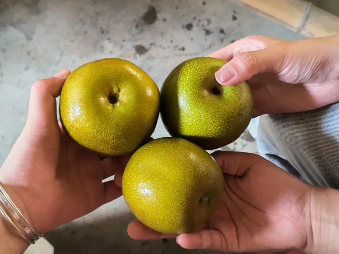 采摘结束后,老爷爷让我们品尝翠冠梨。志愿者们纷纷拿出自己采摘的翠冠梨,相互品鉴、交流心得。吃完后,大家一致认为,此次活动采摘的翠冠梨口感细腻、汁多味甜,品质上乘。