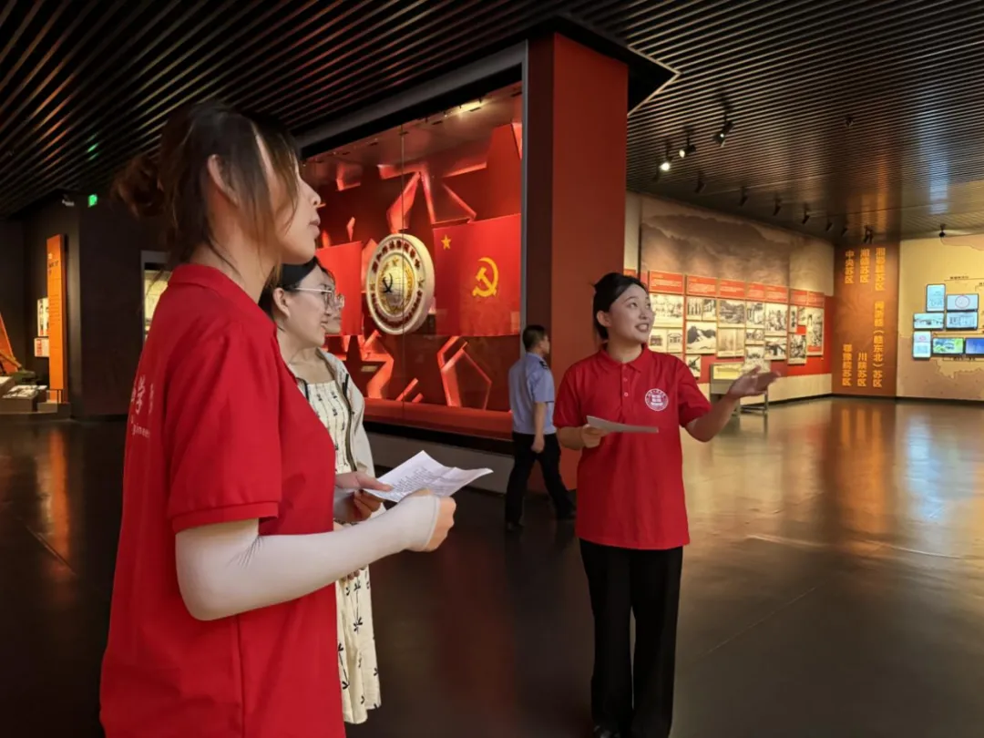 在纪念馆的展厅内,一幅幅尘封的图片、一件件珍贵的文物、一个个生动的雕塑,仿佛将我们带回了那个烽火连天的年代。实践队的成员们化身为历史的讲述者,用饱含深情的语言,向游客们详细讲解了中央革命根据地的创建、中华苏维埃共和国的诞生以及红军长征的艰难历程。