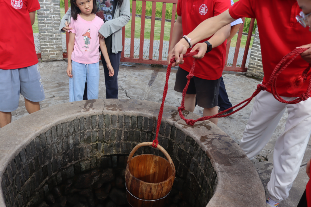 我们观看了雕像以及介绍红井的黑色石碑,随后,大家纷纷来到红井前,俯瞰红井和瞩目纪念碑。并且尝试打水,大家也体验到了井水的甘甜,领悟“吃水不忘挖井人,时刻想念毛主席”的深刻含义。