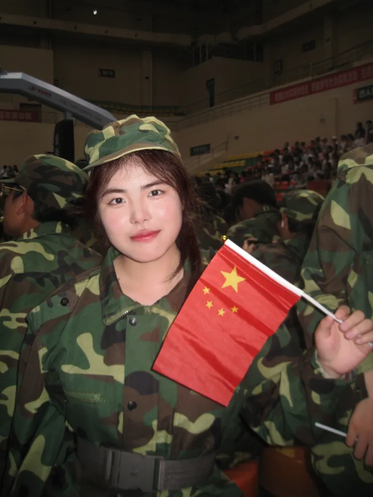 感受:这张照片中,我与五星红旗同框。背景简洁,五星红旗鲜艳夺目。红色旗面似热血,五颗星寓意全国人民紧密团结在党的领导下。我站在国旗旁,身姿端正,眼神坚定且自豪。