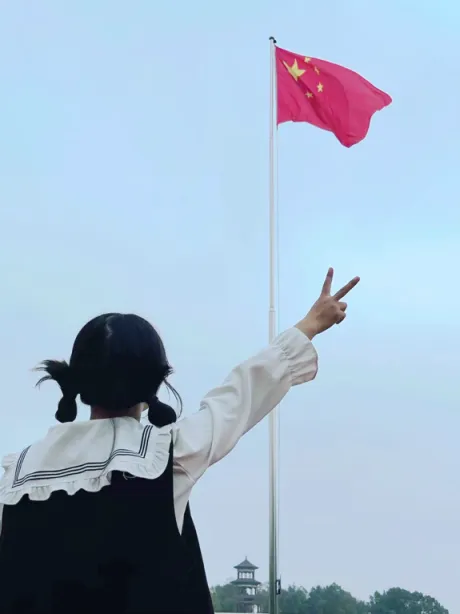 拍照时,我心中满是对祖国的敬意。新中国发展至今,历经无数风雨,五星红旗始终飘扬。这张照片不只是影像,更是我对祖国热爱的寄托。它时刻激励我们传承爱国精神,为祖国伟大复兴而努力。每次看到它,心中都会涌起力量,它是我心中珍贵的画面。