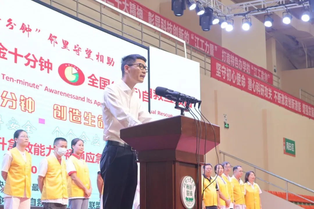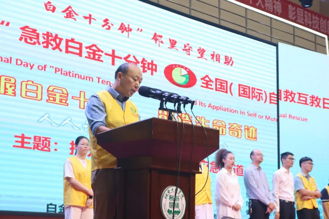 新余市妇幼保健院医务科主任熊志勇宣读健康新余行动暨“急救白金十分钟——全国自救互救活动日”倡议书