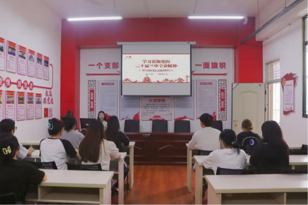 党课伊始,刘露老师紧扣“学习党的二十届三中全会精神,赋能员工党员成长,推动学院高质量发展”的主题,生动解读了党的二十届三中全会精神在我们日常学习、生活以及未来职业规划中的指导作用。她指出,作为新时代的员工党员,我们不仅要深刻理解党的二十届三中全会关于国家发展大局的战略部署,更要将党的二十届三中全会精神融入个人成长与学院建设的每一个细节之中,通过“三结合+三提升+三实践”的路径,即结合党的二十届三中全会精神、学院实际与个人成长需求,提升理论素养、实践能力和团队协作能力,并在学习、服务、创新三个方面积极实践,确保全会精神在我们这一层面得到具体落实和生动展现。