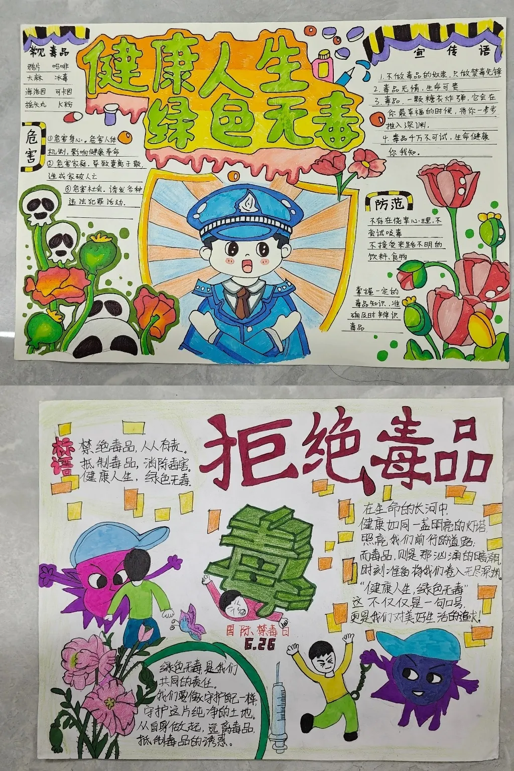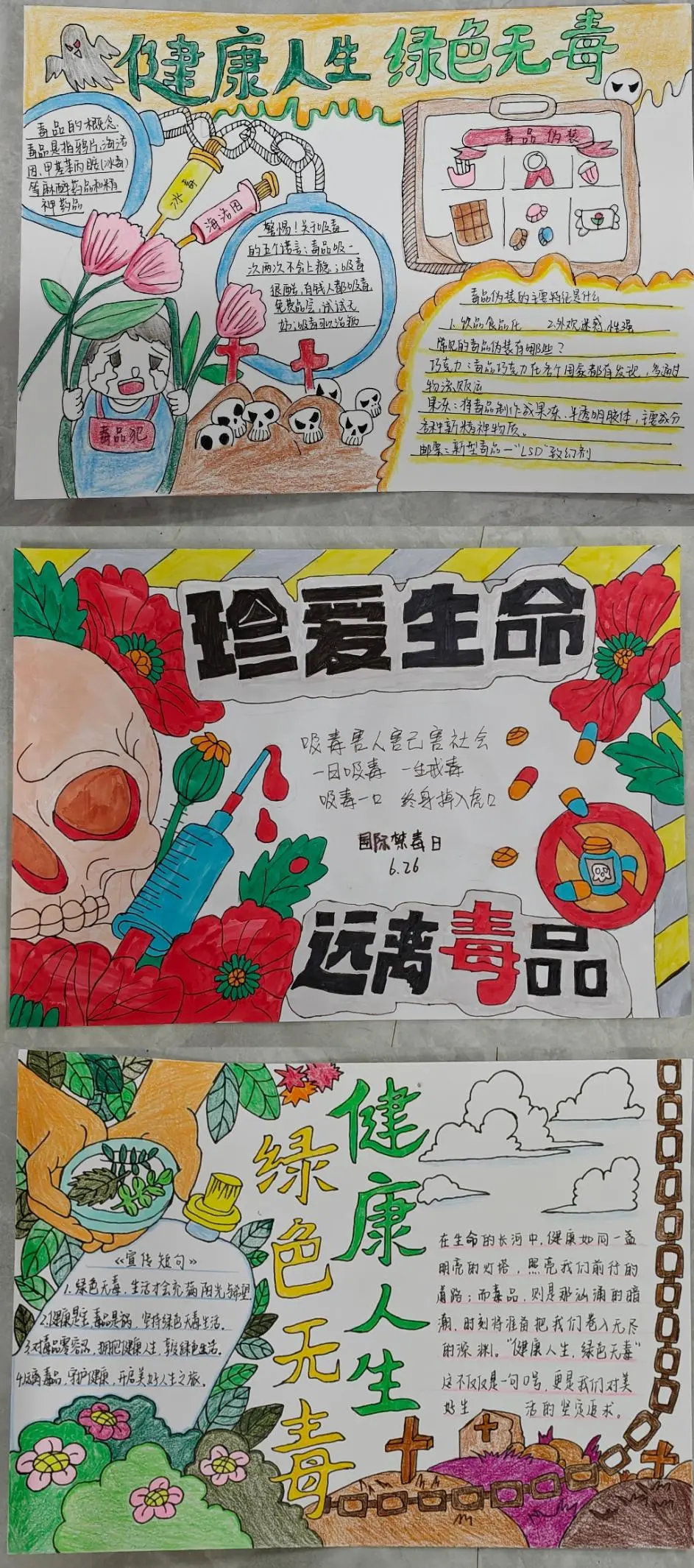 此次手抄报比赛,不仅锻炼了同学们的创意、绘画、书写等多种能力,更是一次深刻的禁毒教育。通过比赛,同学们更加深入地了解了毒品的危害,增强了自我保护意识,同时也将禁毒的理念传递给了身边的每一个人。让我们一起为同学们的精彩表现点赞,共同守护健康、绿色、无毒的校园环境!