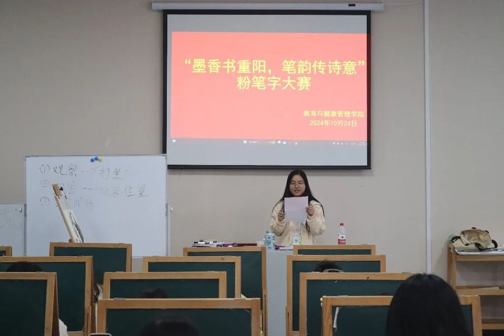 本次“墨香书重阳,笔韵传诗意”粉笔字大赛的成功举办,不仅传承了重阳文化,提高了同学们的书写技能,还丰富了校园文化生活,营造了浓厚的文化氛围。期待下一次的大赛能有更多同学参与,展现出更精彩的书法风采!