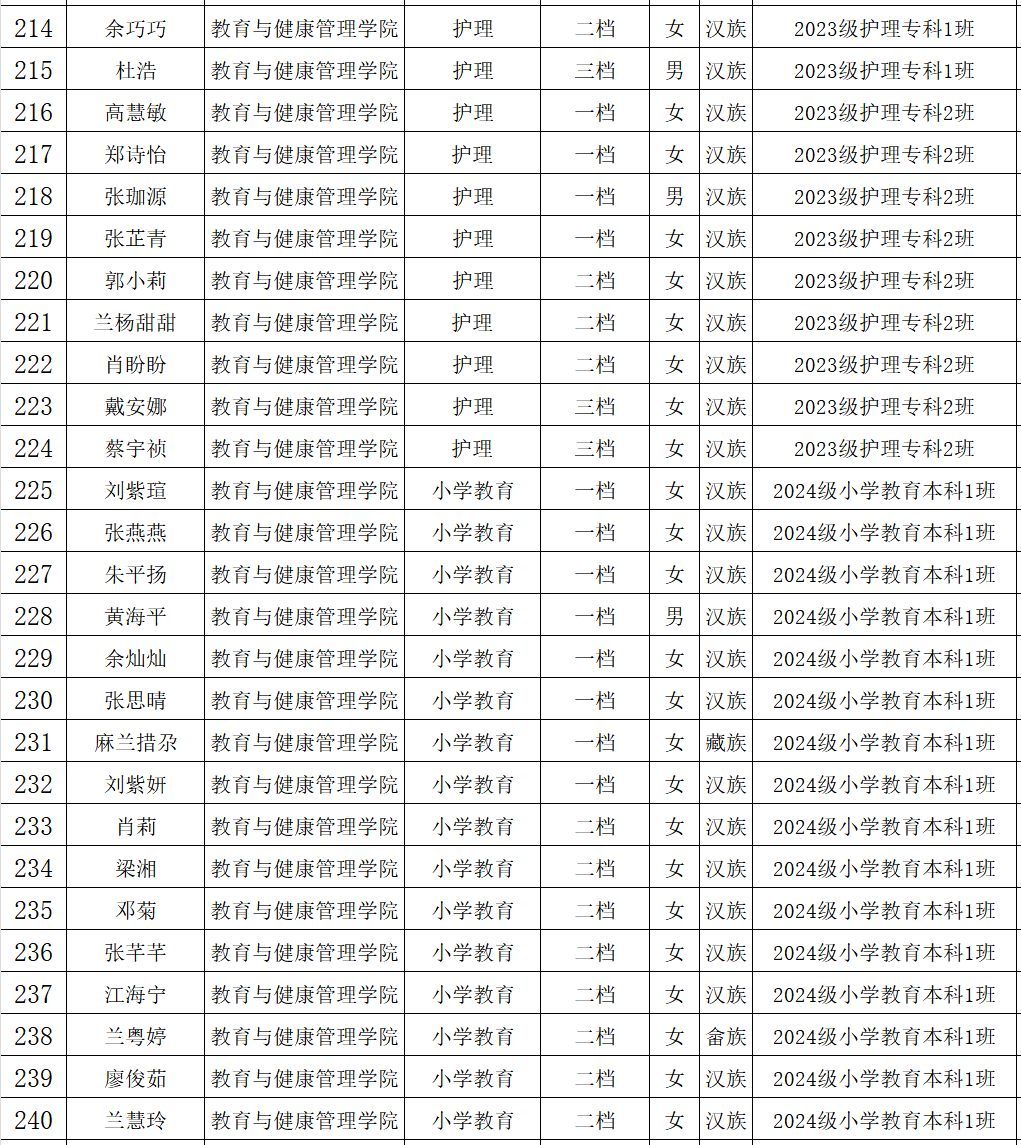 ylzzcom永利总站2024—2025学年拟获评国家助学金名单公示