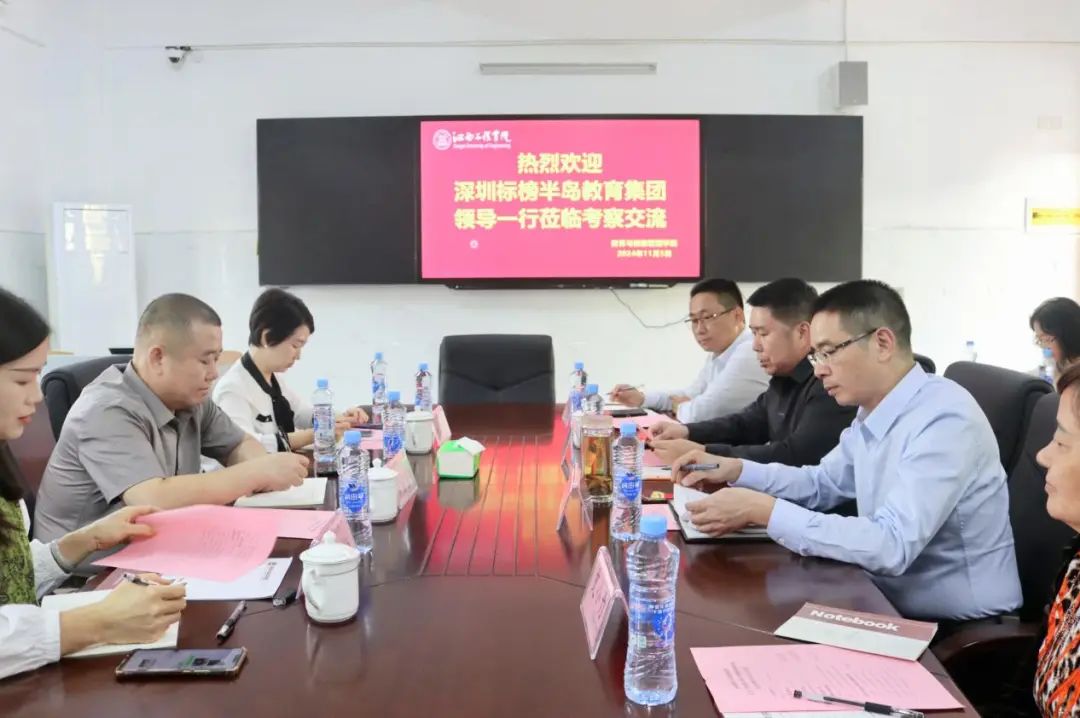 会议伊始,公司党委委员、董事长助理邹建民致欢迎辞,热烈欢迎标榜半岛教育集团一行的到来,并期待双方能够通过此次会议搭建的平台深化交流、促进互动,达成更多合作共识。随后,晏小庆对学院的学科专业特色、一流课程建设、教师队伍建设及人才培养情况等方面进行了详细介绍。