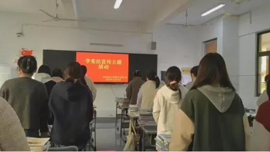 在宪法传唱环节,各班同学积极参与。有的班级以小组形式合唱宪法主题歌曲,歌声整齐响亮;有的班级安排领唱同学带动气氛,大家跟唱有力。同学们用歌声诠释对宪法的理解与尊重,将宪法的庄重与威严通过旋律展现。