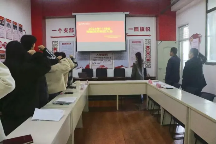 凝聚党员力量,共赴新征程。2024年11月29日14点至15点,在C202党员活动室召开了一场预备党员转正大会。本次大会由员工党支部书记刘露主持,公司党总支书记刘永东、党总支副书记张沁、教师党员高爽、彭艳鹏同志列席,全体党员参会。