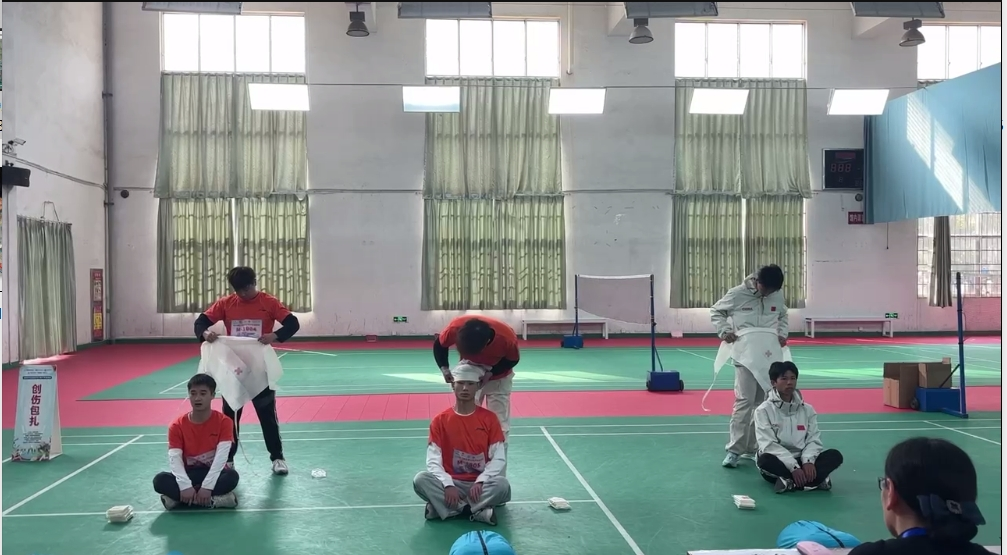 应急救护—三角巾头部帽式包扎男生组PK
