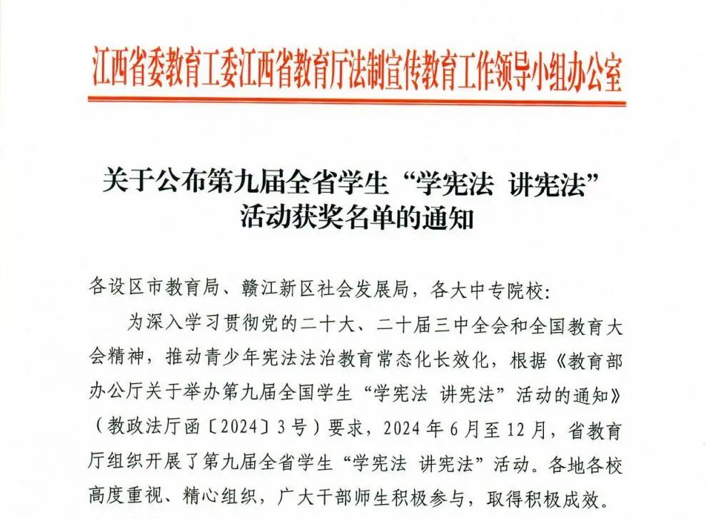 为深入学习贯彻党的二十大精神、党的二十届三中全会和全国教育大会精神,推动青少年宪法法治教育常态化长效化,根据《教育部办公厅关于举办第九届全国员工“学宪法讲宪法”活动的通知》(教政法厅函〔2024〕3号)要求,2024年6月至12月,省教育厅组织开展了第九届全省员工“学宪法讲宪法”活动。