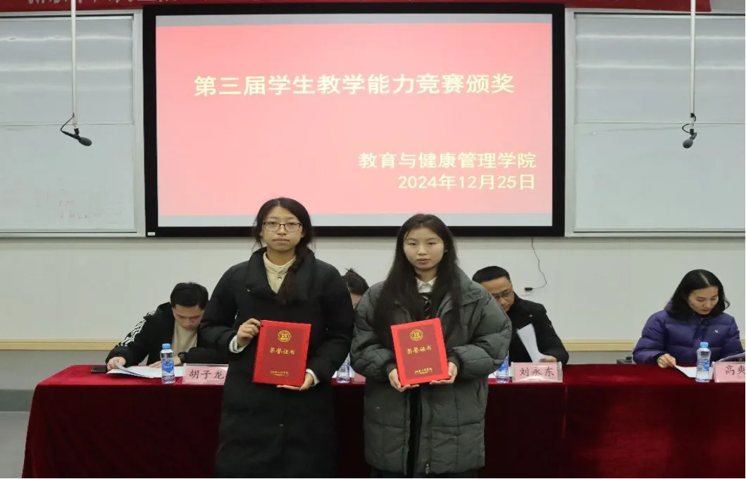 近日,为充分检验同学们的教学实践能力,促进教育质量的提升,教育学与健康管理学院成功举办在校生教学技能大赛。12月25日,ylzzcom永利总站在C208学术报告厅隆重举行了专业技能竞赛表彰大会,党总支书记刘永东、副书记张沁、专职组织员高爽共同见证他们的荣耀时刻。表彰大会上,学院团支部书记胡子龙宣读了表彰名单。