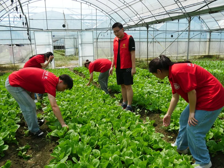 为了摆脱季节的束缚,蔬菜大棚内营造出温暖如春、绿意盎然的氛围。无论外界是寒风呼啸还是烈日炙烤,这里都为蔬菜提供了适宜生长的乐园。每一粒种子都在精心呵护下茁壮成长,从而为人们持续供应新鲜美味的蔬菜。志愿者们在讲解员的带领下进入大棚,看到了各种各样的蔬菜,一些志愿者还前往翠冠梨园,亲身体会到了种植业的艰辛以及农民的劳苦,同时从当地了解到了更多有关种植的知识。总之,蔬菜大棚和翠冠梨不仅为人们带来了绿色、健康、美味的农产品,还对当地的就业和经济发展起到了重要的推动作用。