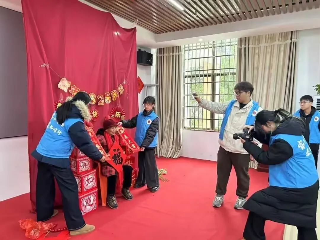 春节将至,岁寒情深。在组织的引领下,我们于新干县银河家园养老院开展了“金晖行动”敬老爱老活动。活动开始,我们便动手搭建起充满春节氛围的拍摄场景,红灯笼、春联、福字等装饰品将现场装点得年味十足。在志愿者的精心引导下,每位老人都兴高采烈地参与了新年照片的拍摄,镜头前洋溢着他们的幸福与喜悦。拍摄后,我们将照片打印并细心装入相框,作为新年礼物赠予老人们。
