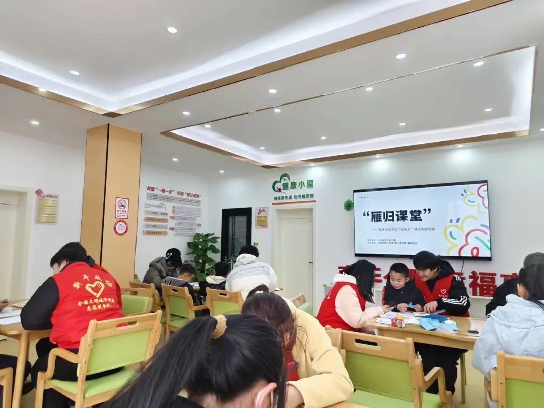 此外,在“雁归课堂”活动中,我们前往新干城南社区的儿童活动中心,为青少年儿童提供学习和心理上的辅导与关爱。我们利用多媒体技术和专业知识,结合不同年龄段孩子的性格特征,精心设计了涵盖语文、数学、艺术和体育等领域的丰富课程,让他们在快乐中学习新知。