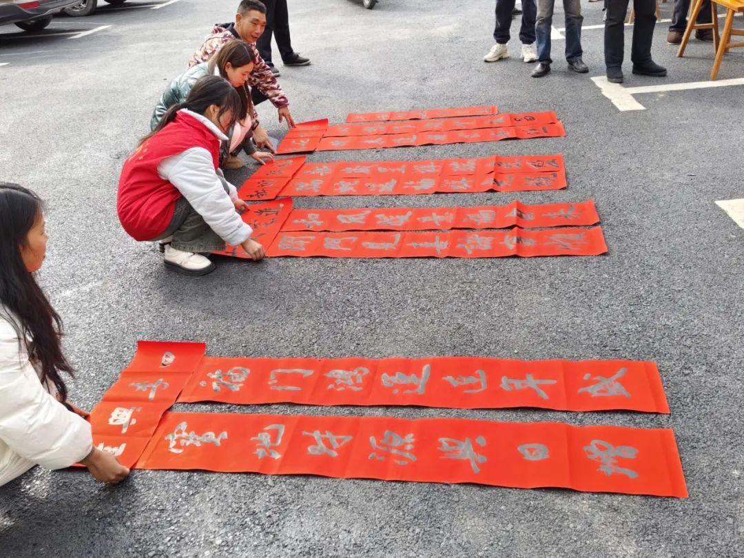 送春联活动是我参与的首个项目。筹备期间,我与志愿者伙伴们共同清扫了村里的中心广场,搬运、擦拭并整齐摆放好桌椅。活动当天,书法老师挥毫泼墨,写下一副副饱含祝福的春联。我们在一旁认真地将写好的春联摆放在地上晾干,分类整理并摆放整齐。看着村民们围拢过来,脸上绽放出开心的笑容,我的内心也满是喜悦。