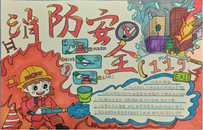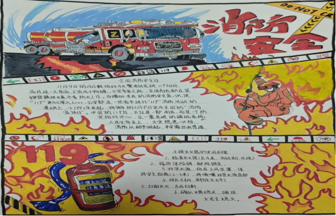 活动期间,同学们踊跃参与,围绕消防安全主题展开丰富创作。火灾隐患场景、消防救援瞬间、消防器材科普等元素纷纷在作品中呈现。有的同学用细腻笔触描绘消防员英勇灭火的画面,有的则用鲜艳色彩绘制消防标识科普图,还有的用生动漫画讲述火灾预防小故事。这些作品,无一不展现出同学们对消防安全的深刻理解,以及对创作的热情。