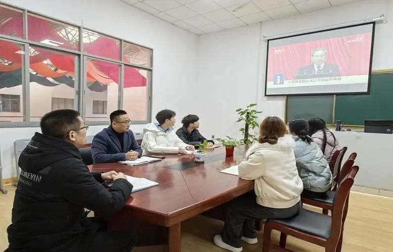 在学院会议室,学院经理晏小庆、党总支书记刘永东带领部分党员和入党积极分子集中观看了十四届全国人大三次会议开幕会直播。大家聚精会神地聆听国务院总理李强所作的《政府工作报告》,认真记录要点,不时交流心得。观看过程中,大家深受鼓舞,深刻感受到国家在过去一年取得的重大成就以及未来发展的宏伟蓝图。