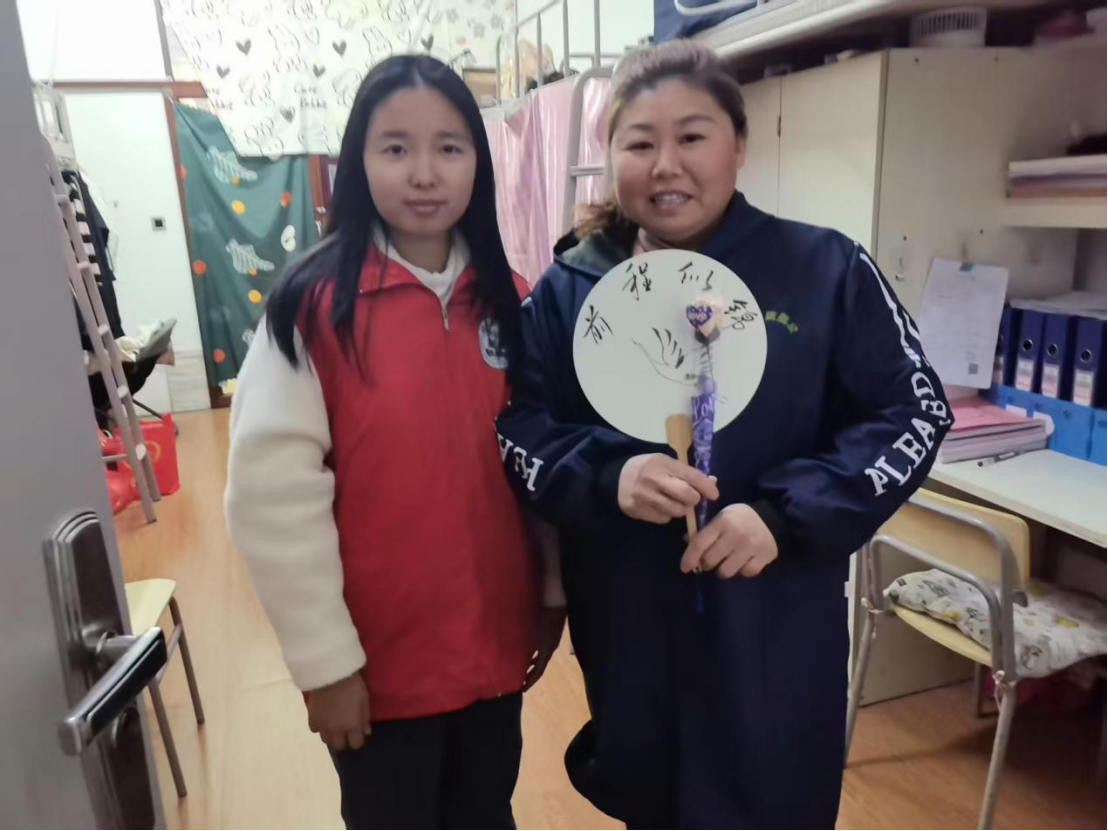 当阿姨们收到这些手工扇子时,脸上露出了惊喜和感动的笑容。她们仔细欣赏着每一把扇子的细节,感受着志愿者们的用心与创意。“这扇子做得太漂亮了,我都舍不得用了!”一位阿姨笑着说道。她们还与志愿者们分享了自己对手工艺术的喜爱,以及扇子在她们生活中的特别意义。