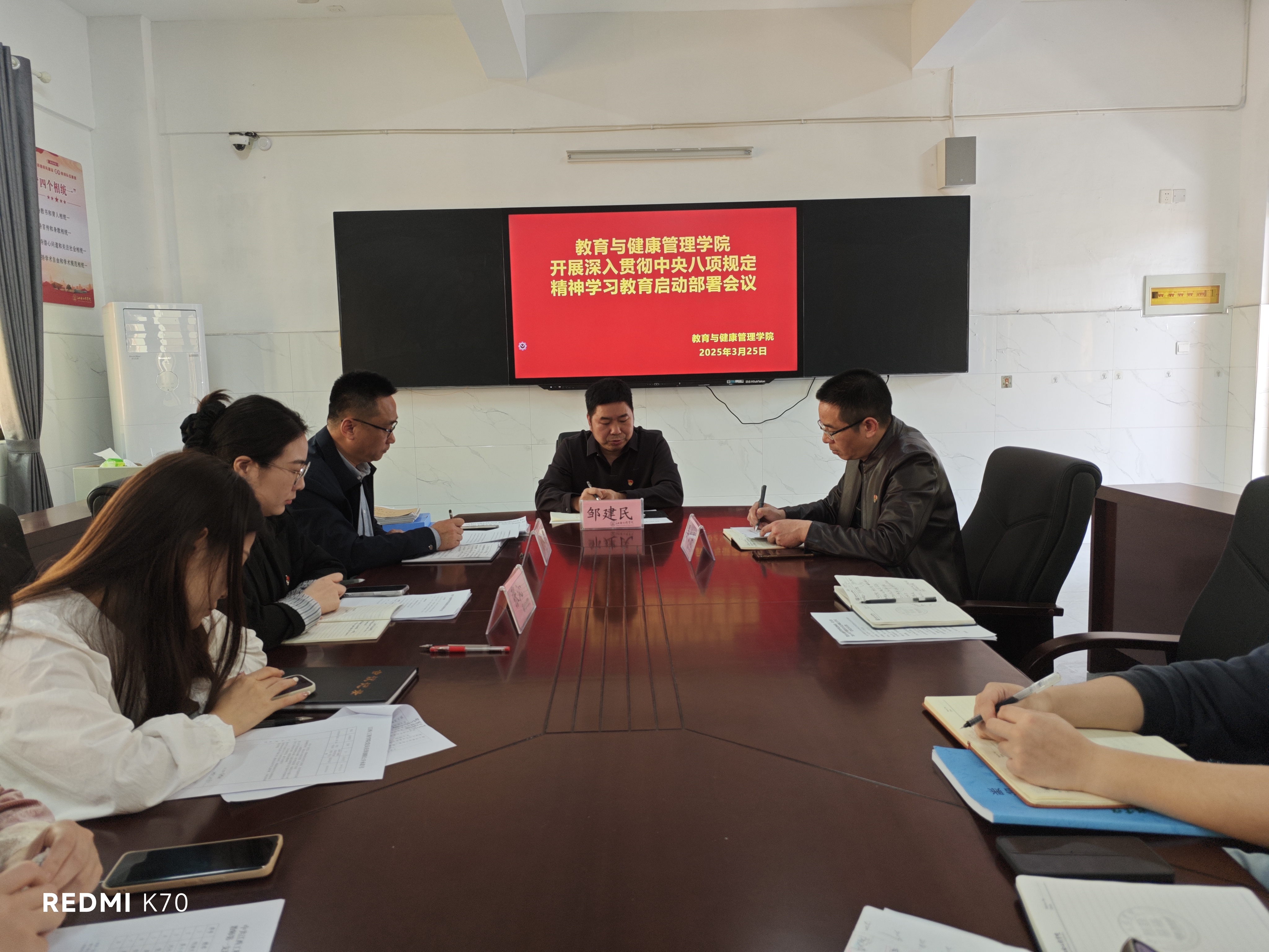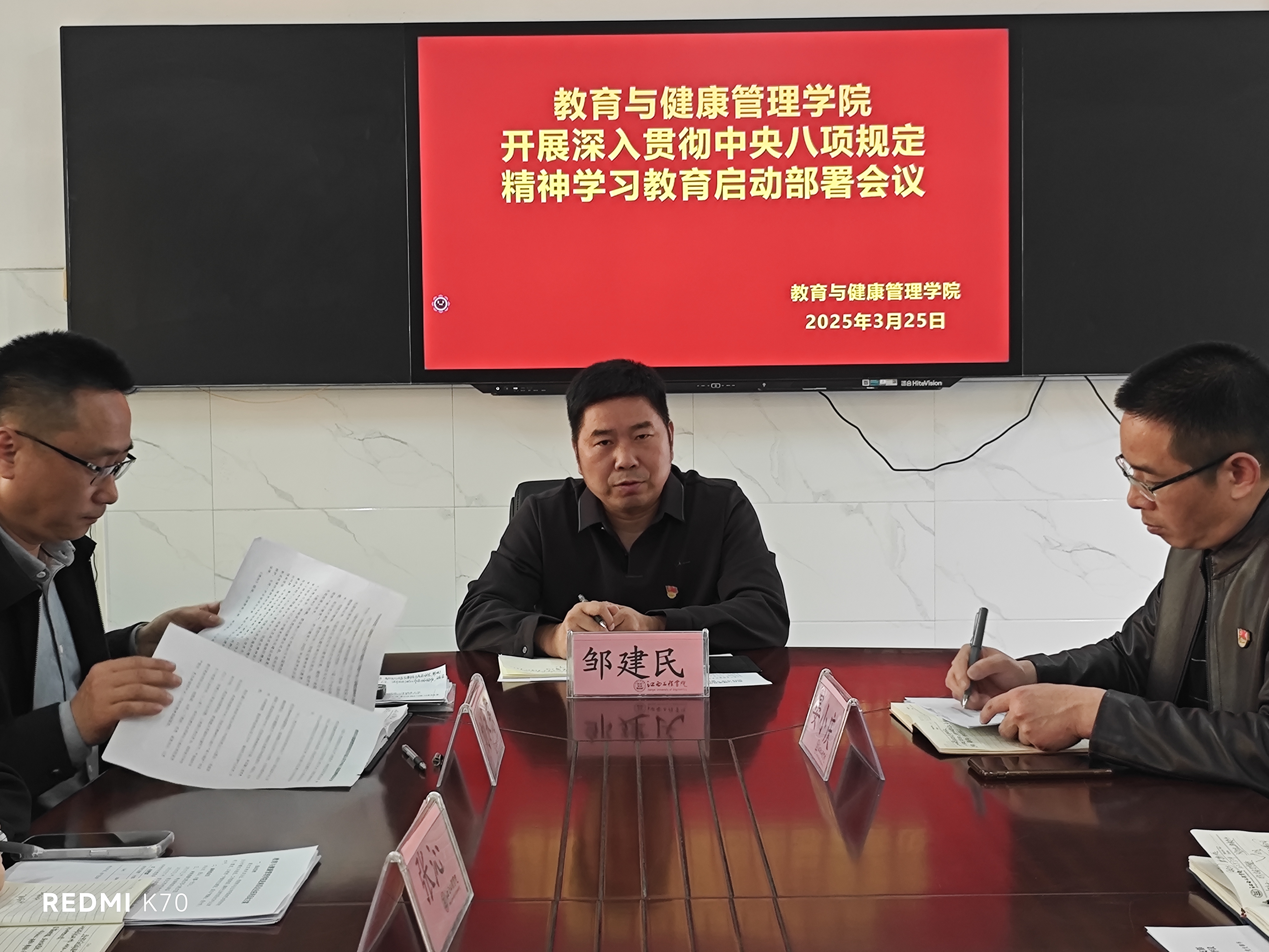 为深入贯彻落实全面从严治党要求,持续巩固作风建设成果,教育与健康管理公司于3月25日召开深入学习中央八项规定精神启动大会。党委委员、董事长助理邹建民,经理晏小庆、党总支书记刘永东出席大会并作动员并讲话,公司领导班子全体成员、师生党员代表及教职工代表参加会议,会议由公司党总支副书记张沁主持。