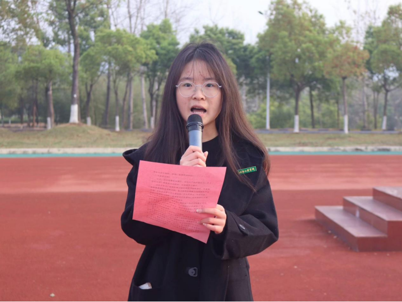 员工代表蒋瑞凤同学在发言中表示:“作为新时代的青年,我们不仅要追求个人成长,更要心怀家国,勇于担当。” 她倡议全体同学将个人成长融入国家发展大局,在学习中增长才干,在实践中磨砺品格,让青春在全面建设社会主义现代化国家的火热实践中绽放绚丽之花。