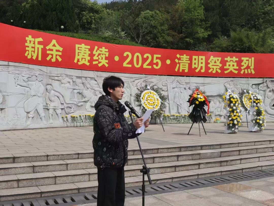 上午10:30时,全体师生整齐列队于纪念碑前。在庄严肃穆的《献花曲》中,员工党员代表缓步上前,向革命烈士敬献花篮。员工党支部书记刘露仔细整理挽联,全体师生肃立默哀一分钟,深切悼念为革命事业英勇献身的先烈。巍峨的纪念碑上,“新余烈士纪念碑”七个金色大字在阳光下熠熠生辉,无声诉说着那段烽火岁月中国共产党人的信仰与担当。