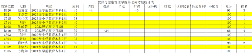 为进一步推进学院学风建设,提高人才培养质量,加强员工的组织纪律性,学院每周开展学风检查活动。以下是本周的考勤情况: