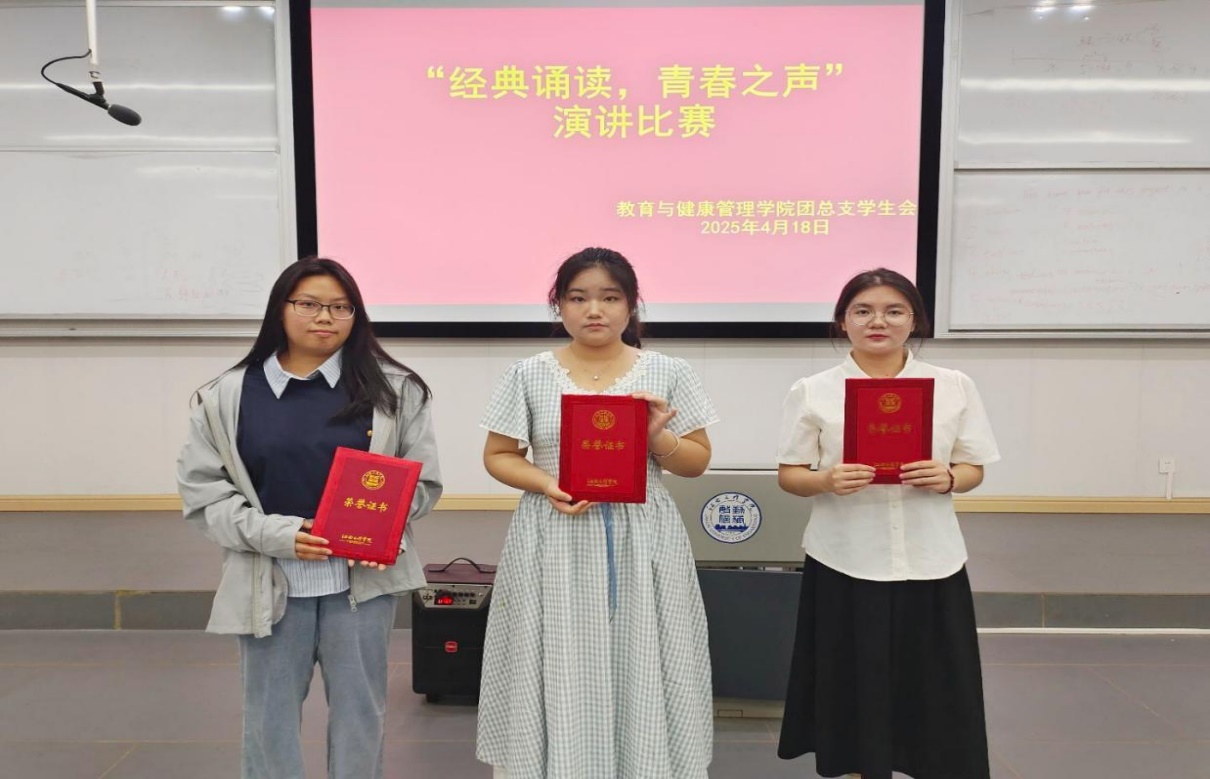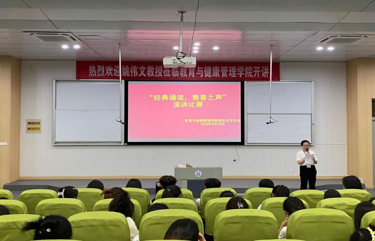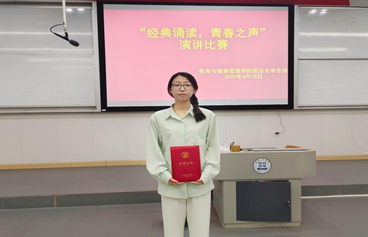 比赛现场,气氛热烈而庄重。选手们精心准备,以饱满的热情、激昂的语调,为观众带来了一场视听盛宴。青春之声演讲环节更是精彩纷呈。选手们紧紧围绕主题,结合自身经历与感悟,畅谈自身的思考与见解。她们有的讲述革命先烈的坚持与拼搏,有的分享对中华文化与青春价值的深刻理解,有的表达对历史典籍的思考与见解。真挚的情感、生动的语言、自信的姿态,展现出教育健康管理学院学子积极向上的精神风貌和朝气蓬勃的青春活力。台下观众全神贯注,沉浸在选手们的精彩表现中,不时爆发出热烈的掌声。