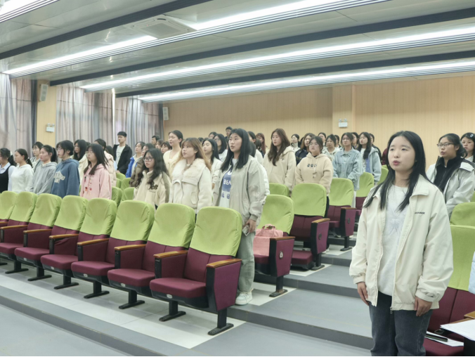 大会最后一项议程,全体起立奏唱校歌,悠扬的歌声展现出学院师生的昂扬风采。